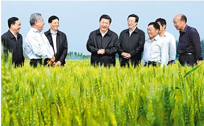 这是5月9日下午,习近平在尉氏县张市镇高标准粮田察看小麦长势。新华社记者 张 铎摄