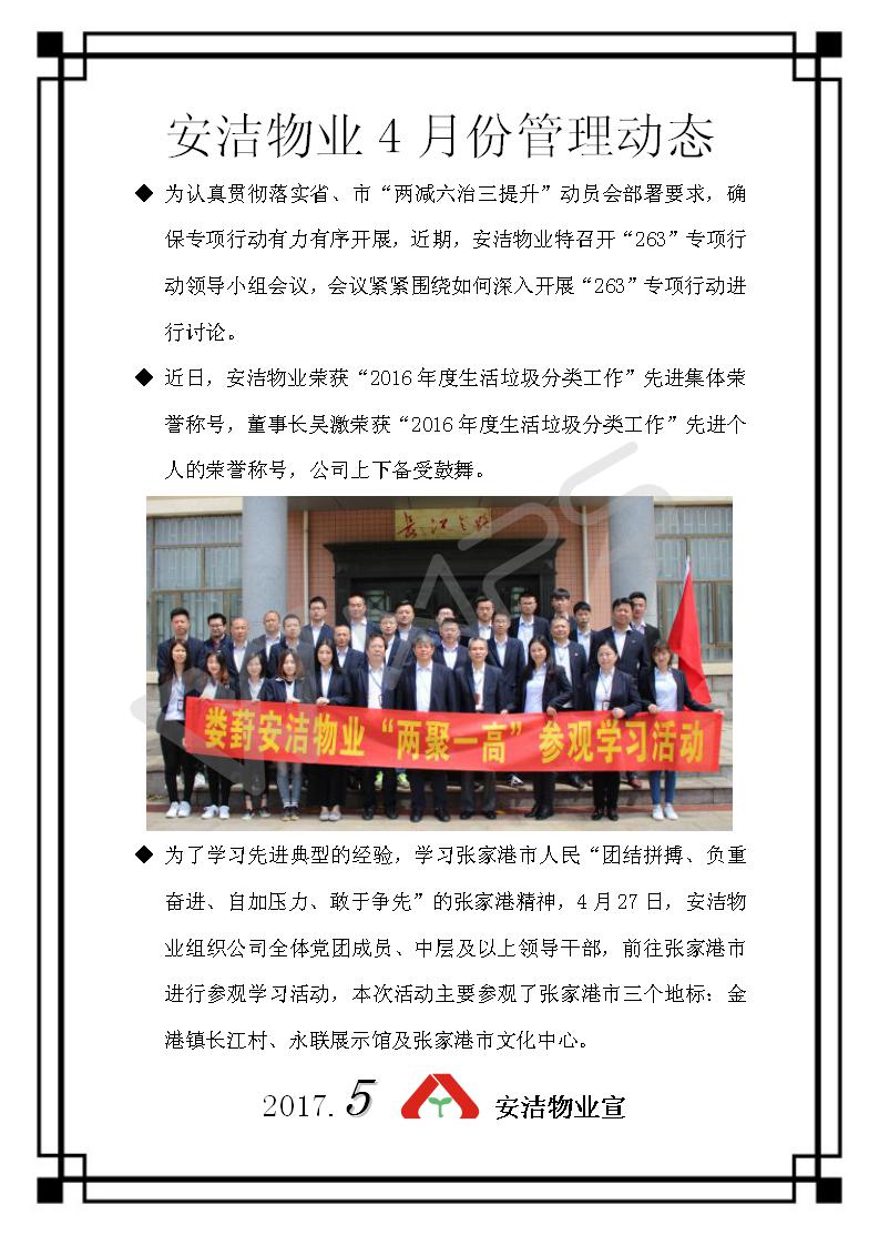 安洁物业4月份管理动态