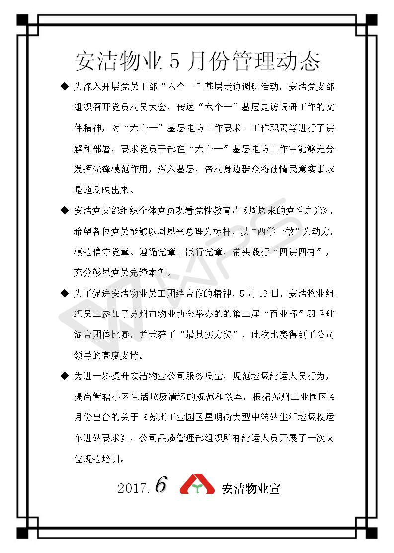 安洁物业5月份管理动态