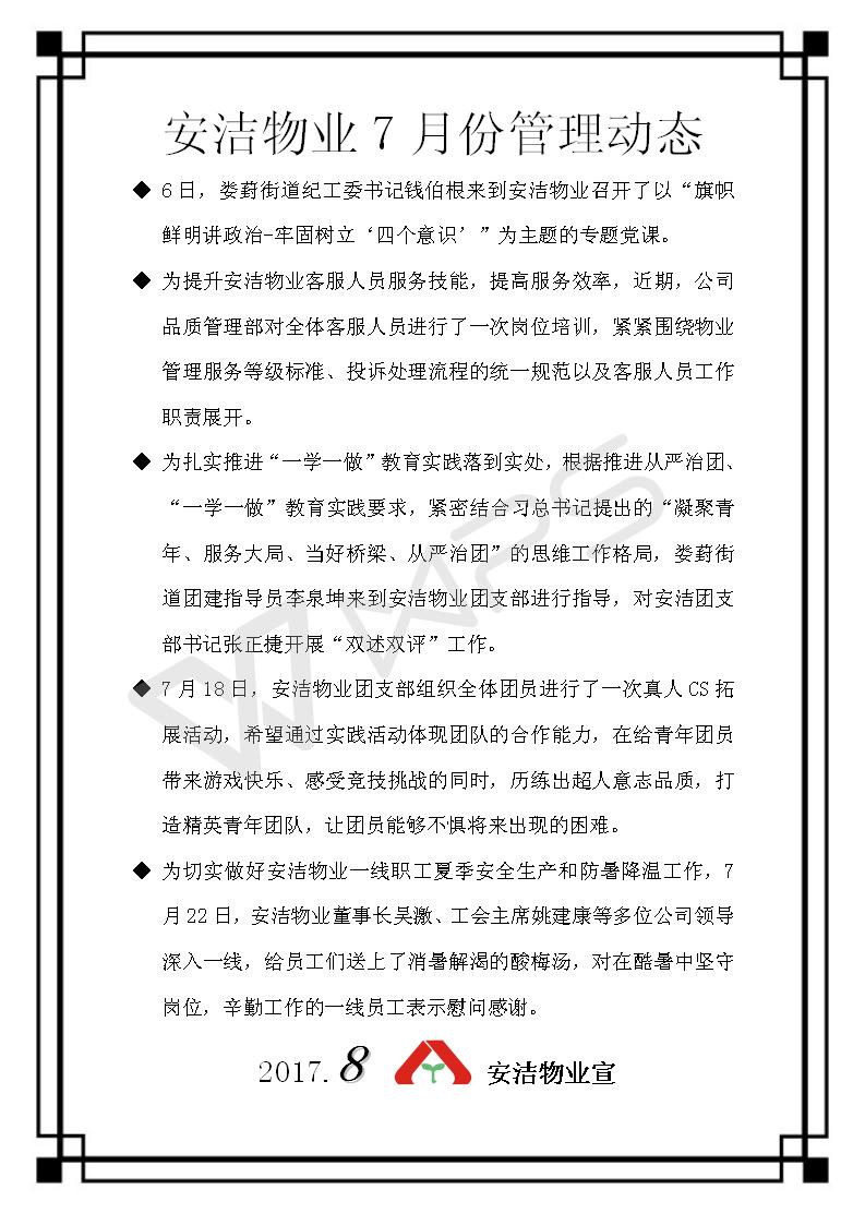 安洁物业7月份管理动态
