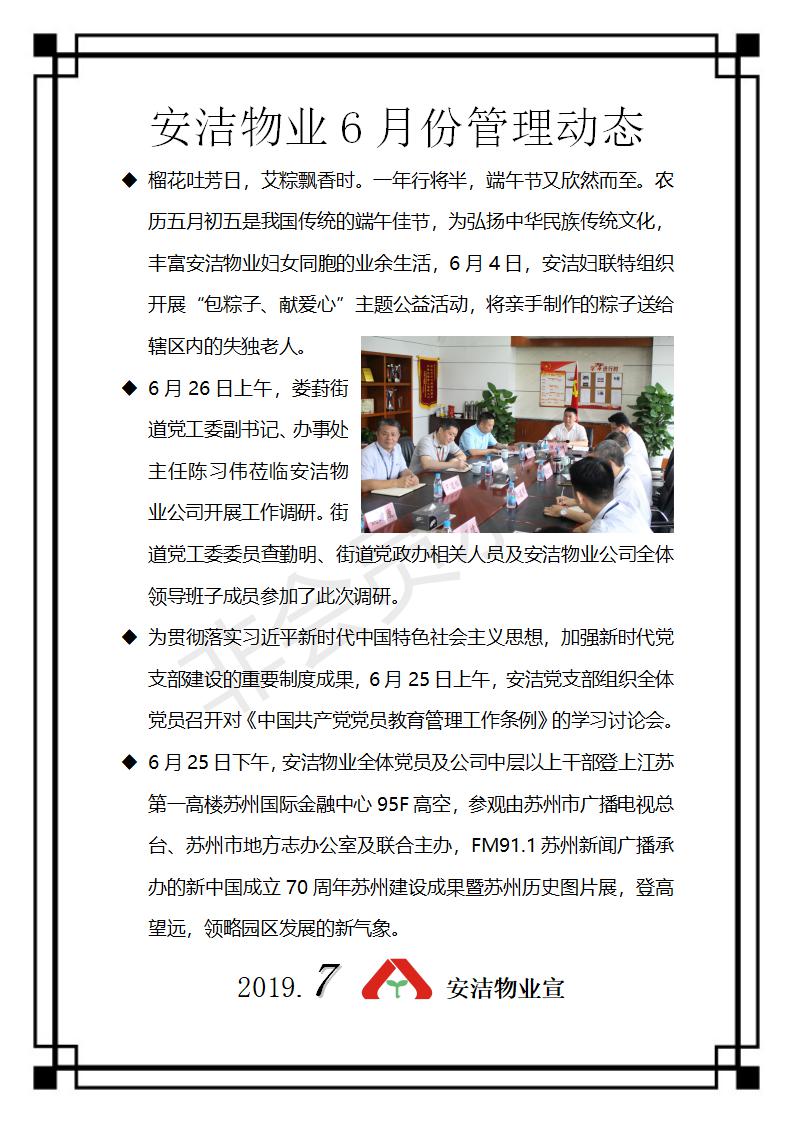 安洁物业6月份管理动态