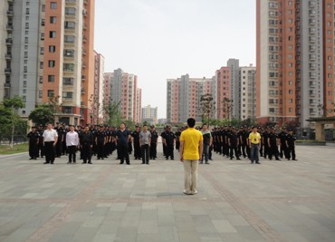 7、 5月7日下午由公司保安部经理、区域负责人带领全体保安队员,以班组为单位在新苏苑小区进行会操汇演评比。5月25日召开会操考核表彰大会,王文林副总经理向第一名新苏苑徐多生班组、第二名新苏苑徐金洪班组、第三名临芳苑闻建忠班组及安保示范区新苏苑小区颁发锦旗。