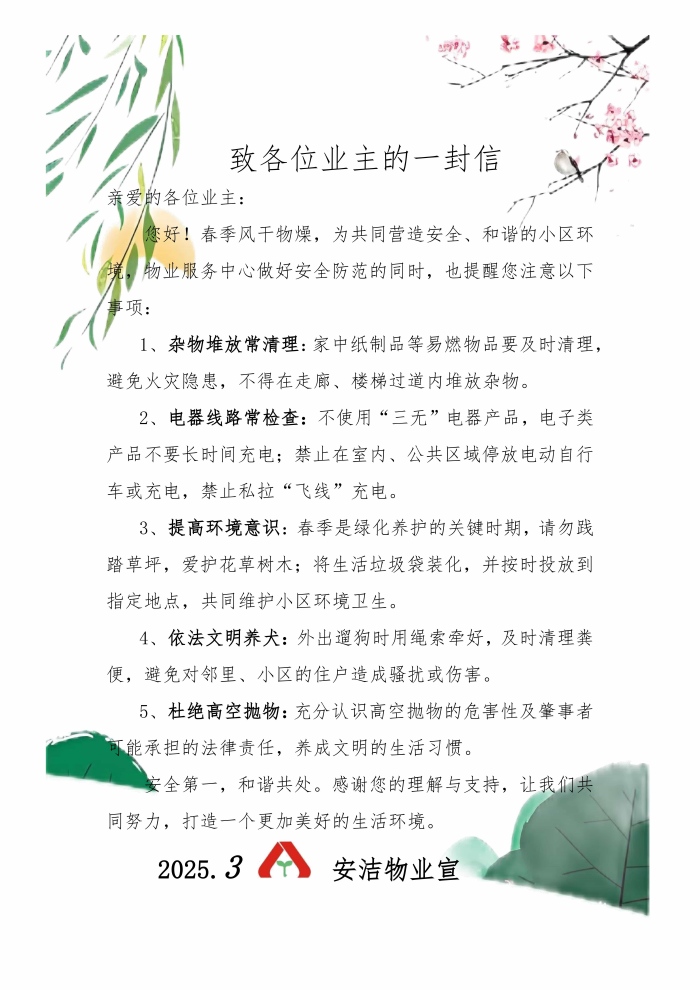 致业主的一封信