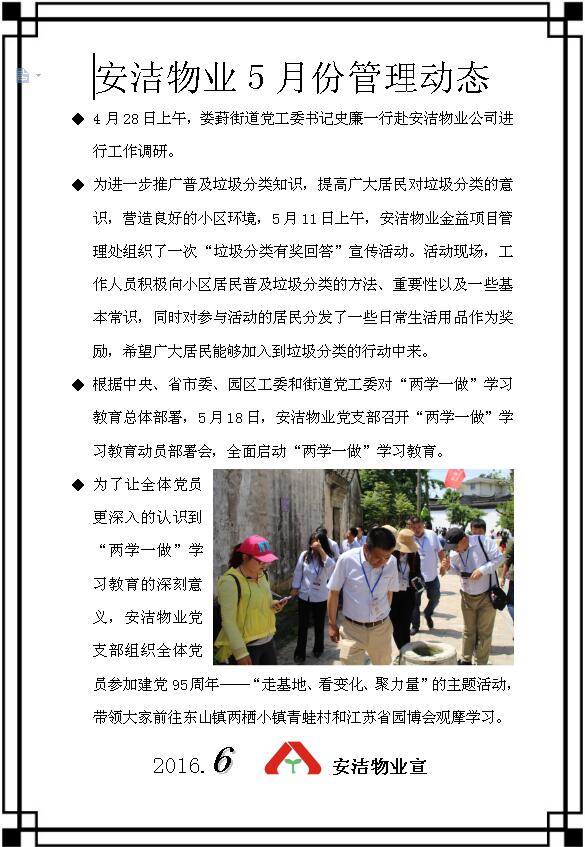 安洁物业5月份管理动态