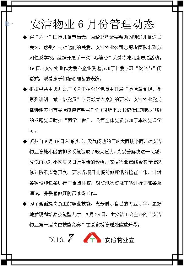 安洁物业6月份管理动态