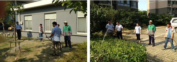 连日来的高温天气, 大地像蒸笼一样,热得使人喘不过气来,就连小区原本郁郁葱葱草木都低垂着头,无精打采。于是 在7月19日,安洁夏家桥管理处负责人组织绿化、保安、工程、保洁各部门员工及夏家桥社区人员对小区绿化进行浇灌 ,给绿化“解渴”。喝饱水的树木又恢复了往日的精神,呈现出一片生气勃勃的景象,给小区居民带来丝丝凉意。