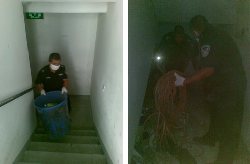 2013年9月9日,安洁物业新苏苑保洁员在10幢打扫楼道时,发现-1层楼梯口有大量居民随手丢弃的杂物并不时伴有阵阵恶臭。于是立刻报告负责人,新苏苑管理处负责人立即安排保洁和保安人员配合清理,消除了安全隐患,给居民营造一个干净、舒适、安全的生活环境。同时提醒广大业主,请勿在楼道内堆放乱扔杂物。