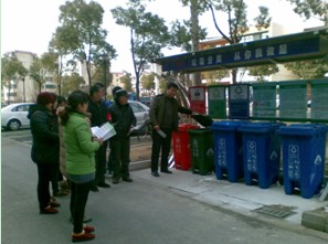 在2013年11月底,新苏苑经过前期努力,终于在小区完成了垃圾分类再生资源回收点的建设以及完成垃圾桶等设施设备的配备工作。