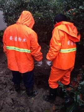 安洁物业冒雨维修消防管道