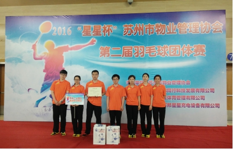 4月23日,安洁物业公司受邀参加由苏州市物业管理协会举办的2016“星星杯”第二届羽毛球混合团体比赛,安洁物业公司在综合管理部经理金洁丽的带领下,经过近半个月的刻苦训练,本着“锻炼队伍,友谊第一”的原则参加了本次比赛。比赛过程中,公司队伍充分展示了朝气蓬勃、齐心协力的精神风貌,鉴于表现突出,朝气蓬勃,我司被授予了“最佳组织奖”。