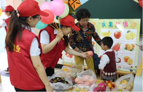 在游园活动正式开始后,小朋友们在家长的陪同下踊跃参与我们设计的“九宫格水果猜猜猜”游戏,并和志愿者们积极互动,合影留念,游戏结束后领取相应的水果奖品。