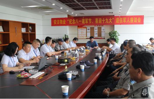 为庆祝中国人民解放军建军90周年,在8月1日这个特殊的日子里,安洁物业组织召开庆“八一”退伍军人座谈会,公司党支部委员以及31名退伍军人参加了本次座谈会。