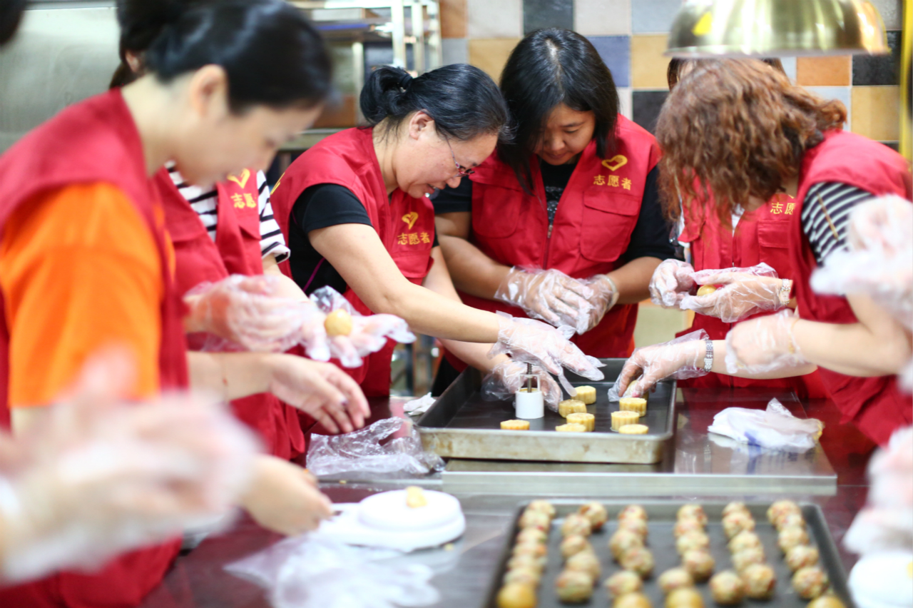 活动现场,授课老师首先向大家讲解了广式月饼的原料、制作步骤和模具的使用方法,还对食用广式月饼的禁忌进行了科普,最后亲自示范制作过程,并带领志愿者们一步一步做出了完整的月饼。每个月饼的制作都要经过调馅、称重、擀皮、包馅、压膜成型,大家分工合作,忙的不亦乐乎,当一个个月饼伴着期待和香味出炉的时候,每个人脸上都洋溢着欢乐和幸福。