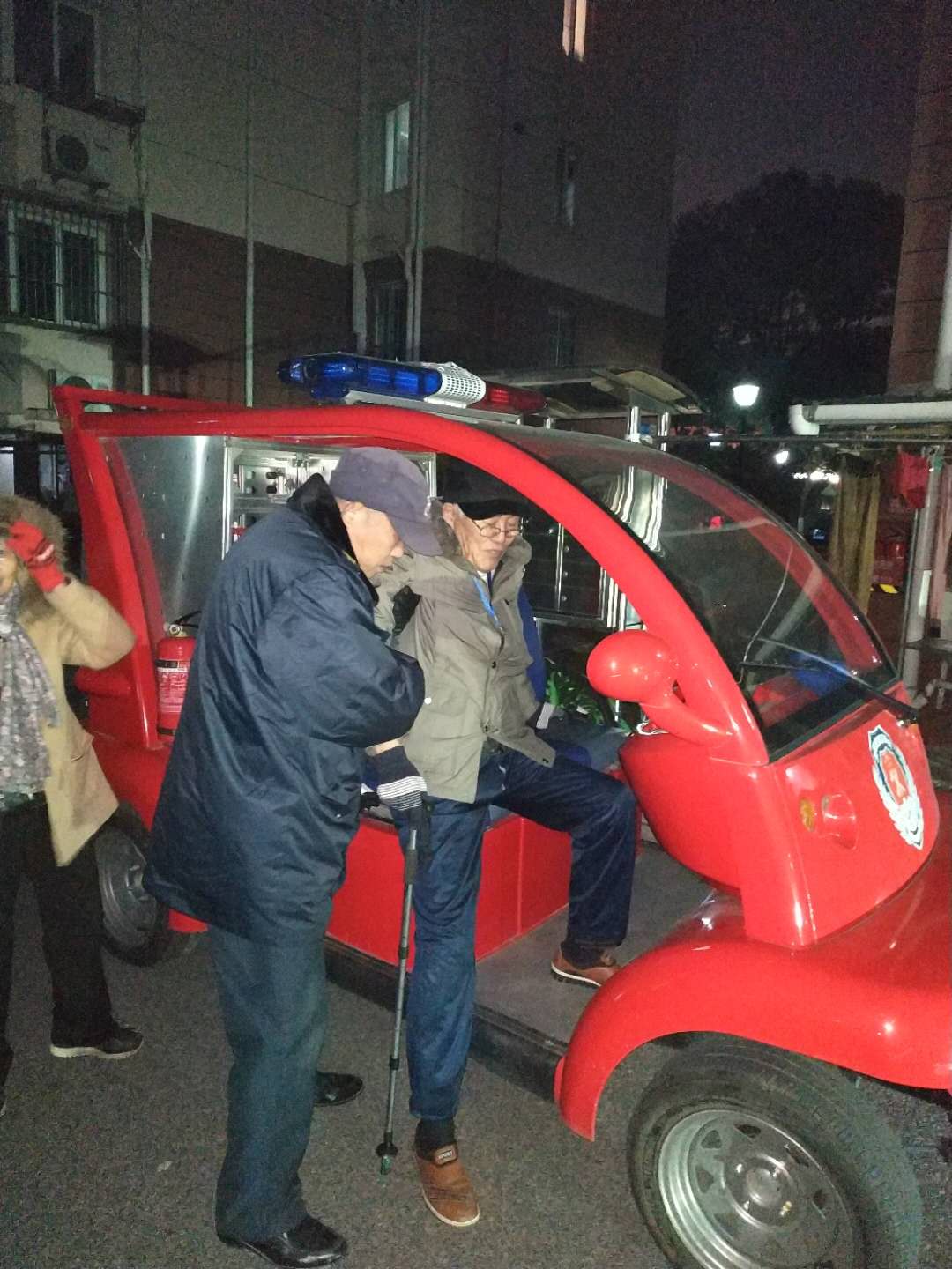 12月13日20时左右,正在小区巡逻的秩序班长吴龙官接到社区工作人员电话,称在金益三村公交车站台上有一位老人行动不便,请求物业帮忙送他回家。听后吴龙官开着小区巡逻车迅速赶到站台,就看见有两位老人坐在公交车站的长椅上。交流后得知这位老人是金益三村的党员李智毅,今年已是83岁的高龄了,当天日间从医院检查身体后坐公交回家时发现坐骨神经发作,陪同的妻子一时慌了神。天气寒冷,子女又不在身边,她瘦小的身子也搀扶不了老伴,就在着急没主意的时候,社区工作人员高伟秋经过,了解情况后便向物业请求帮助。为尽快将老人送回家中,吴龙官搀扶老人坐上巡逻车,到单元楼下后又叫来两名队员一起将老人送回家中。