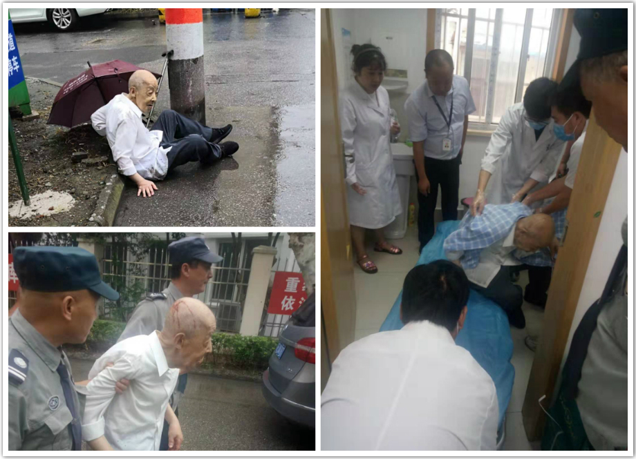 虽然发现及时,但此时老者头部已经摔破正在不停流血,考虑到老人年事已高,居国民当即使用对讲机呼叫秩序班长寻求帮助,班长接到报告后立即召集所有巡逻队员赶往现场,几人合力将老者扶起送往卫生所,并及时报警。