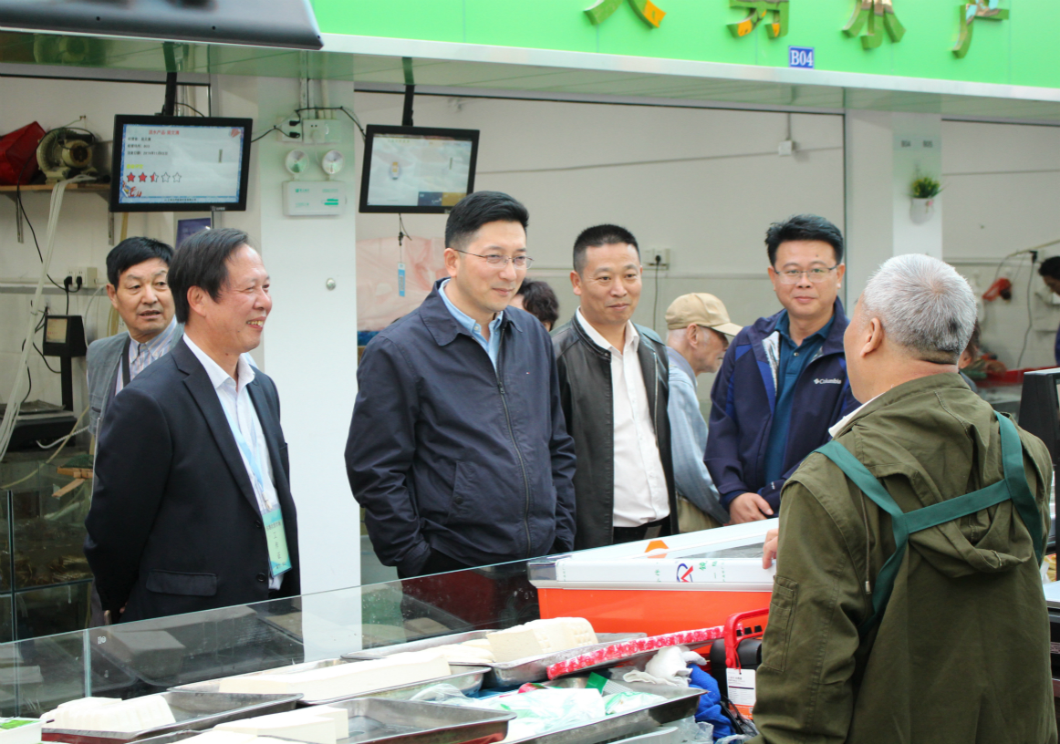 8日下午,娄葑街道党工委书记傅刚、党工委委员查勤明一行特地来到东港邻里菜场开展视察工作,实地走访查看了菜场整体改造提升后的环境卫生、硬件设施等,参观了菜场的蔬菜水果区、水产区、小吃一条街等区域,了解了菜场的菜价管理、安全监测、环境管理等内容,还与相关摊位经营者进行了沟通交流。视察最后傅书记对东港邻里菜场的改造提升工程表示肯定,同时指出改造提升后的菜场宽敞、明亮、干净,相关保障工作也比较到位,但仍要注意规范市场管理,保障食品安全,抑制菜价上涨,进一步提升菜场整体水平,要不断征求广大居民建议,完善日常管理。