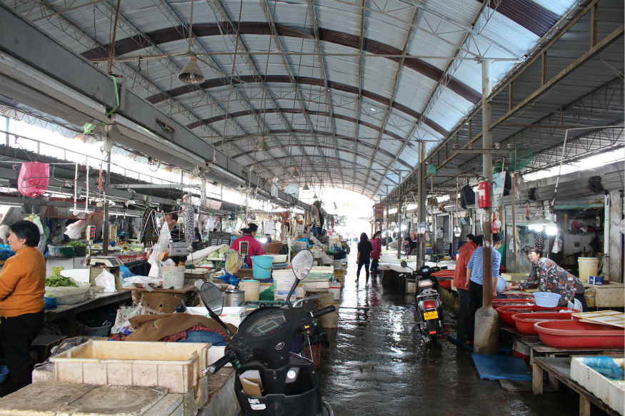 东港菜场于1995年建成投用,由于运行年限较长,各项基础设施老化严重,尤其是顶棚漏雨、钢结构底部腐烂、下水堵塞等问题严重影响了农贸市场的正常运行。2019年4月,借助东港新村环境综合整治的良好时机,娄葑街道投入900余万元对东港农贸市场进行了维修提升改造,11月8日,完成改造的东港邻里菜场正式进入试营业阶段。