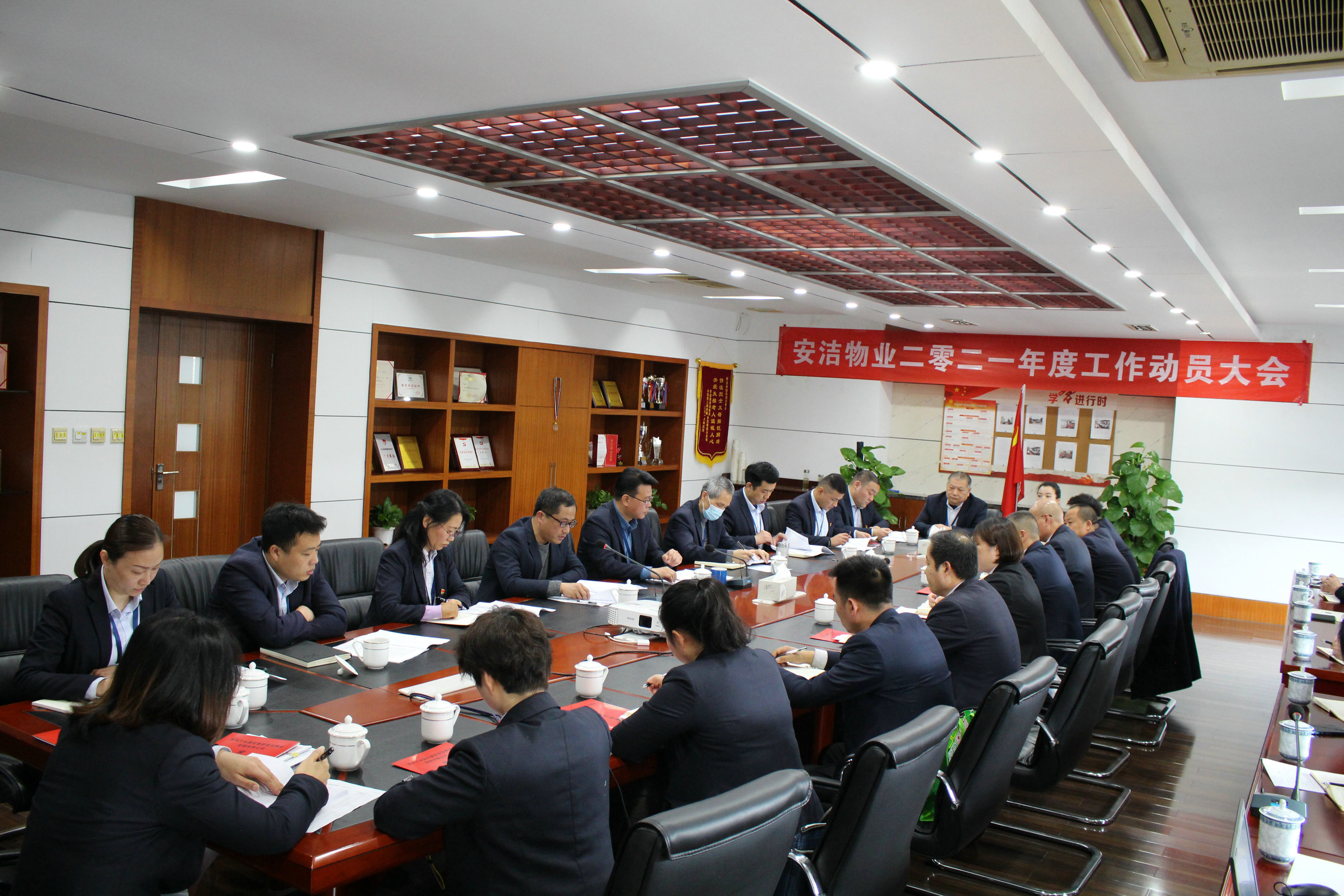 3月3日,苏州工业园区娄葑安洁物业管理有限公司组织召开2021年度工作动员大会,公司领导班子全体成员、各项目经理、各部门/项目处副经理、阳西基地负责人参加会议,会议由副总经理杨飞主持。