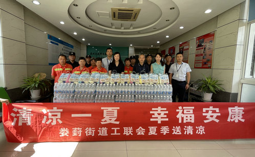 三伏天气,烈日炎炎,7月21日,娄葑街道办事处副主任余林及街道工会相关负责人一行来到安洁物业,带来了街道党工委、办事处及工会组织的关怀和慰问,把盐汽水、沐浴套装等清凉用品送到一线员工的手中。