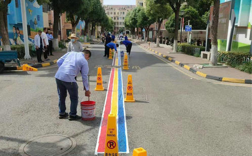 工程人员分组分工,干劲十足,有的丈量尺寸,有的贴胶带、刷油漆,有的拉线、设置警戒栏,配合默契。经过一系列忙碌施工后,小区道路焕然一新,机动车统一在划线两侧行驶,既提升了小区颜值,也保障了小区行人的安全。业主们纷纷表示:“这条线不仅是保障生命安全的通道线,更是在时时刻刻规范大家行为的规范线。”
